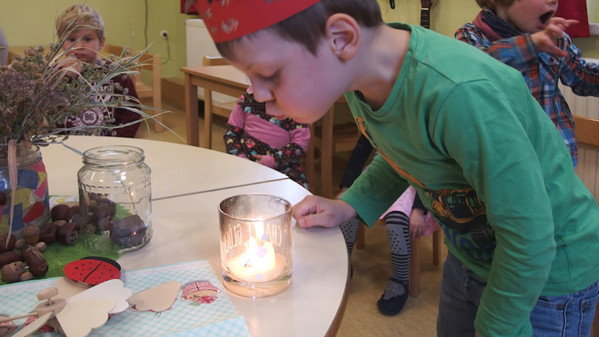Feste Rituale, wie der wöchentliche Morgenkreis, gemeinsame Arbeitseinsätze oder unser Familiennachmittag bieten den Kindern und ihren Familien schöne, gemeinsame Erlebnisse.